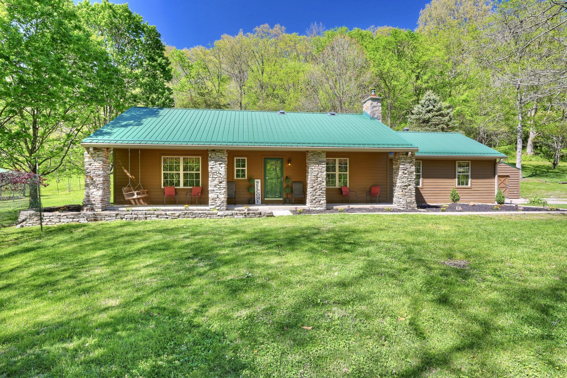 This one wont last! 13.73 acres (3 parcels-all included) 3 bedroom, 2 full baths, one floor living, stone wood burning fireplace, study, huge covered/screened in patio for entertaining, 2 car oversized garage, updates throughout, tile showers, updated light fixtures and vanities, Primary bedroom with adjoining bath, cathedral ceilings and ceiling fan. Conveniently located laundry room with walk out. Spacious kitchen with walk out and all appliances stay. Hardie plank siding, front porch, fresh landscape and gorgeous stone work. 36x55 barn w/ metal roof, concrete floors, electric, water, garage door opener, storage area, lean to and...read more